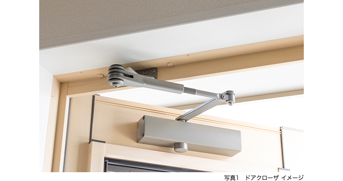 上でも述べたとおり、錠前は取り付け状態やドアの動作(操作)、建付状態などの影響を大きく受ける「精密部品」となっています。そのため、開閉の際にドアが床面を擦っていたり、ドアが閉まる速度が異常に早いなどの不具合は、「ドアが閉まらない=カギがかからないといったトラブルにつながります。なので、あまりイメージがない人も多いと思いますが、多くの鍵と錠のプロは、ドアや丁番、ドアクローザ(写真1)などのいわゆる「ドア周り」に関しても高い知識と技術を持ち合わせているのです。